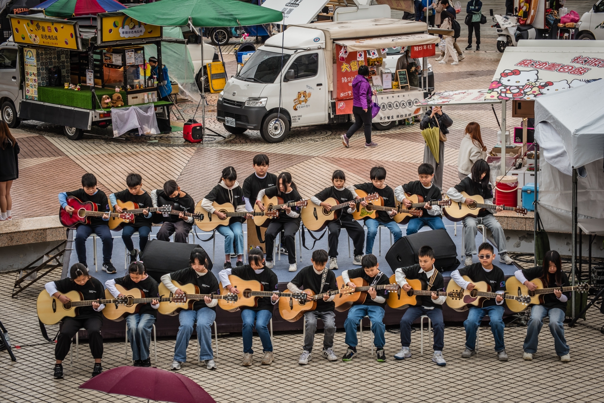 밴드 공연 외에도 언더그라운드 아이돌 공연, 칭수이에 있는 학교 동아리의 청소년 야외 공연, 중장년 지역 주민들의 민속춤도 만나볼 수 있습니다. 정말 지역 축제에 가까운 페스티벌.