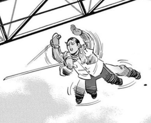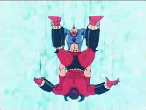 비행선에서 매달린 시라이시의 다리를 붙잡은 아시리파의 모습은 1979년 프로레슬링 만화 '근육맨'에 나오는 근육드라이버의 자세입니다.