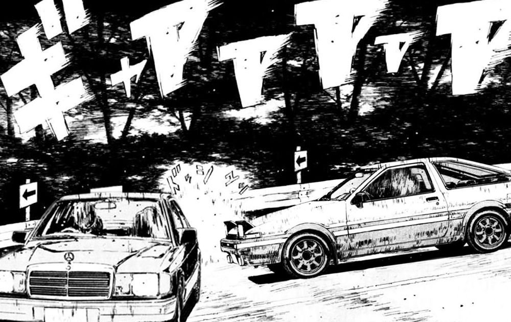 추가로 폭주하는 오토바이 효과음은 1995년 레이싱만화 '이니셜D'의 패러디.