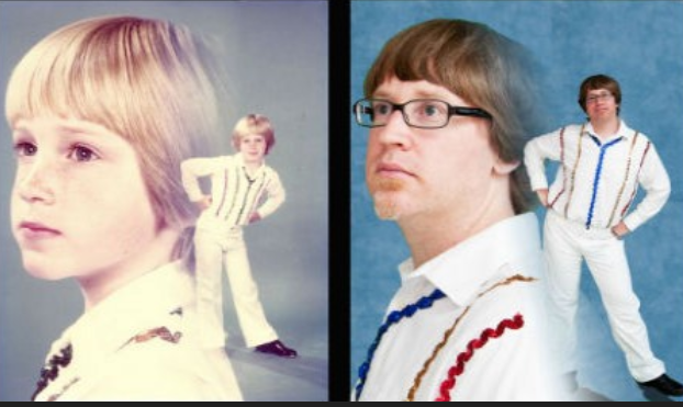 41화 '반짝이다' 표지. 서양 인터넷밈의 패러디입니다. 어렸을 때 사진을 다시 재촬영하는 사진이 밈이 되어 퍼졌다는 듯.