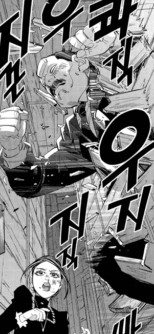 145화 '미스터 제어불능'에서도 폭주해서 마구 때리는 장면도 죠죠의 오라오라 러쉬가 생각나느데요.