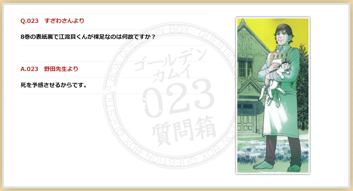 매번 짧은 단어만 쓰던 골든카무이 타이틀이나, 일부러 장문의 긴 문장을 넣었다면 뭔가의 패러디가 아닐까 의심.