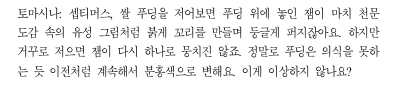 그와 반대로 토마시나는 되돌릴 수 없이 무질서로 향하는 카오스이론의 예시를 가장 친숙한 쌀푸딩으로 풀어낸 거였음.