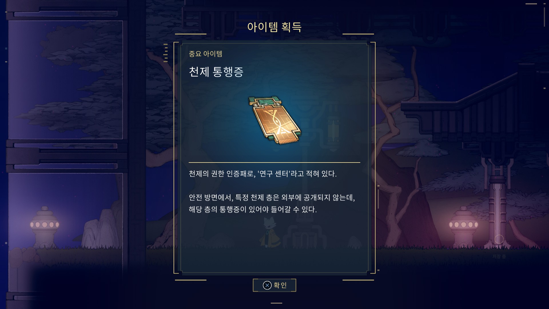 천인구역에서 연구센터에 갈 수 있는 천제 통행증이랑