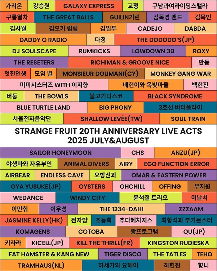 홍대라이브클럽인 스트레인지플룻 20주년을 맞이하여 라인업이 올라왔는데요.