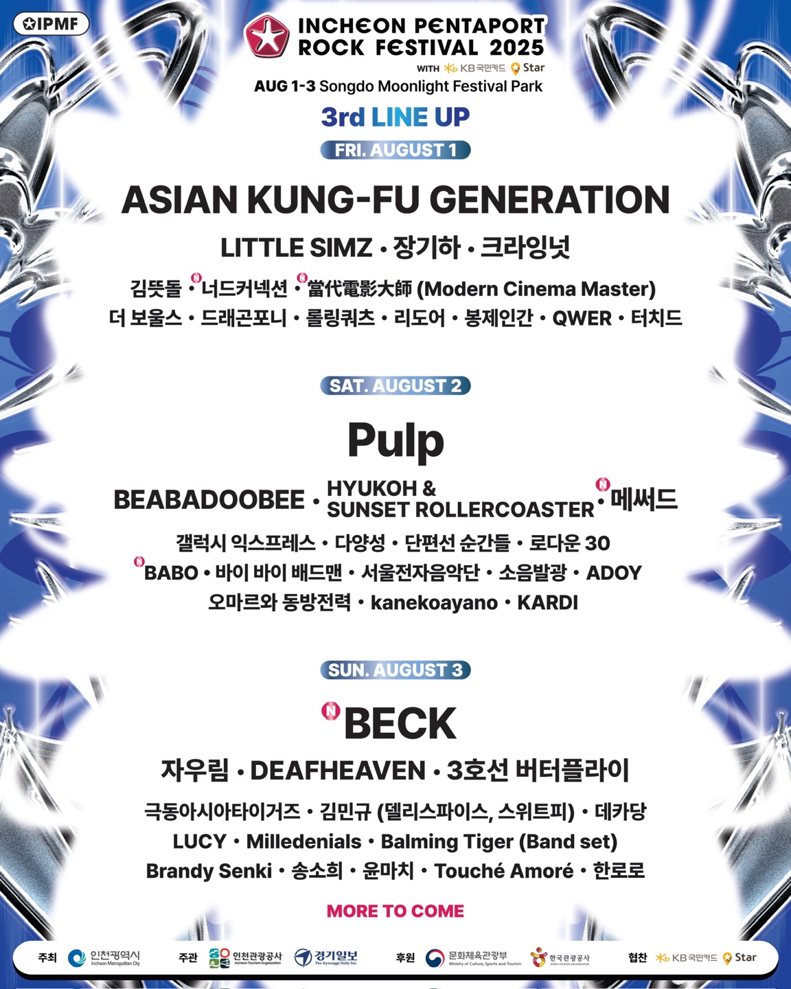 이제 진짜 페스티벌 라인업이 하나씩 뜨고 있어서 새로 팜.